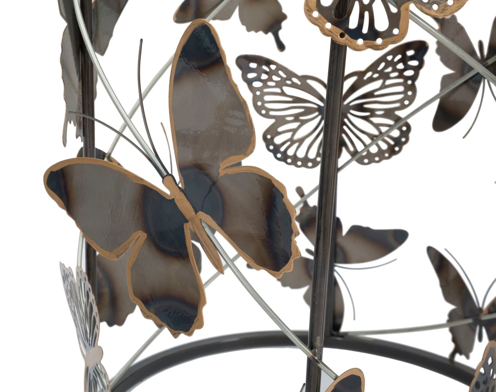 Voeg een vleugje verfijning en charme toe aan je interieur met onze Butterfly Bliss Table Set. Deze prachtige set van twee tafels combineert elegantie met een speelse twist door de unieke vlinderdecoraties. De ronde tafels zijn een geweldige aanvulling op elke ruimte en brengen een unieke flair in je woning. Specificaties: Materiaal: Metaal en glas Kleur: Zwart met gouden accenten Afmetingen: Grote tafel: Ø41,3 cm Kleine tafel: Ø35 cm Design: Vlinder-vormige versieringen Stijl: Modern met een speelse, artistieke touch Set bevat: 2 ronde tafels Of je nu een stijlvol statement wilt maken in je woonkamer of een elegant accent aan je slaapkamer wilt toevoegen, de Butterfly Bliss Table Set biedt de perfecte mix van functionaliteit en esthetiek. Maak van elke ruimte een unieke ervaring met deze charmante tafels!