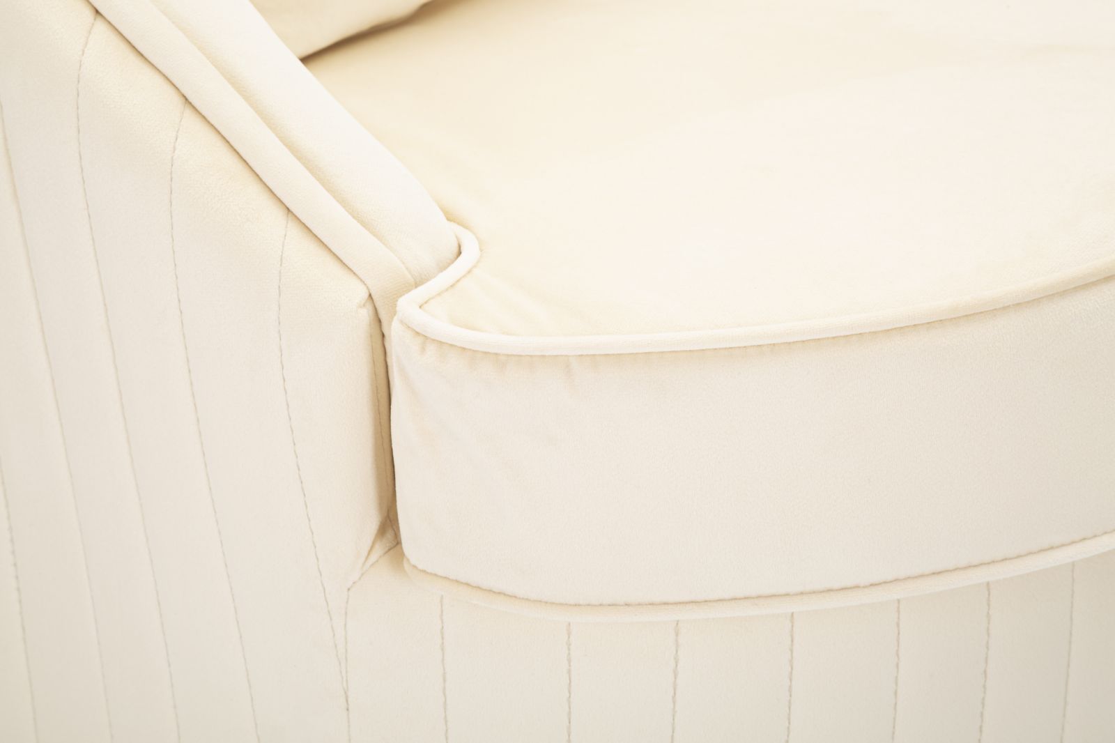 Ontdek de luxe en stijl van de Fauteuil Space Plus in een verfijnde crèmekleur. Deze elegante ronde fauteuil is perfect voor elke moderne interieur, met zijn eenvoudige lijnen en luxueuze afwerking. De gouden decoratie aan de basis geeft een extra vleugje glamour, terwijl het comfortabele kussen met een geometrisch gouden patroon een uitnodigende uitstraling biedt. Specificaties: Afmetingen: Ø75×80 cm Materiaal: Gewatteerde stof Kleur: Crème Decoratie: Gouden details op de basis en op het kussen Inclusief: Eén kussen met gouden geometrische decoratie Voeg een statement stuk toe aan je woonkamer en geniet van de combinatie van comfort en elegantie met de Fauteuil Space Plus!