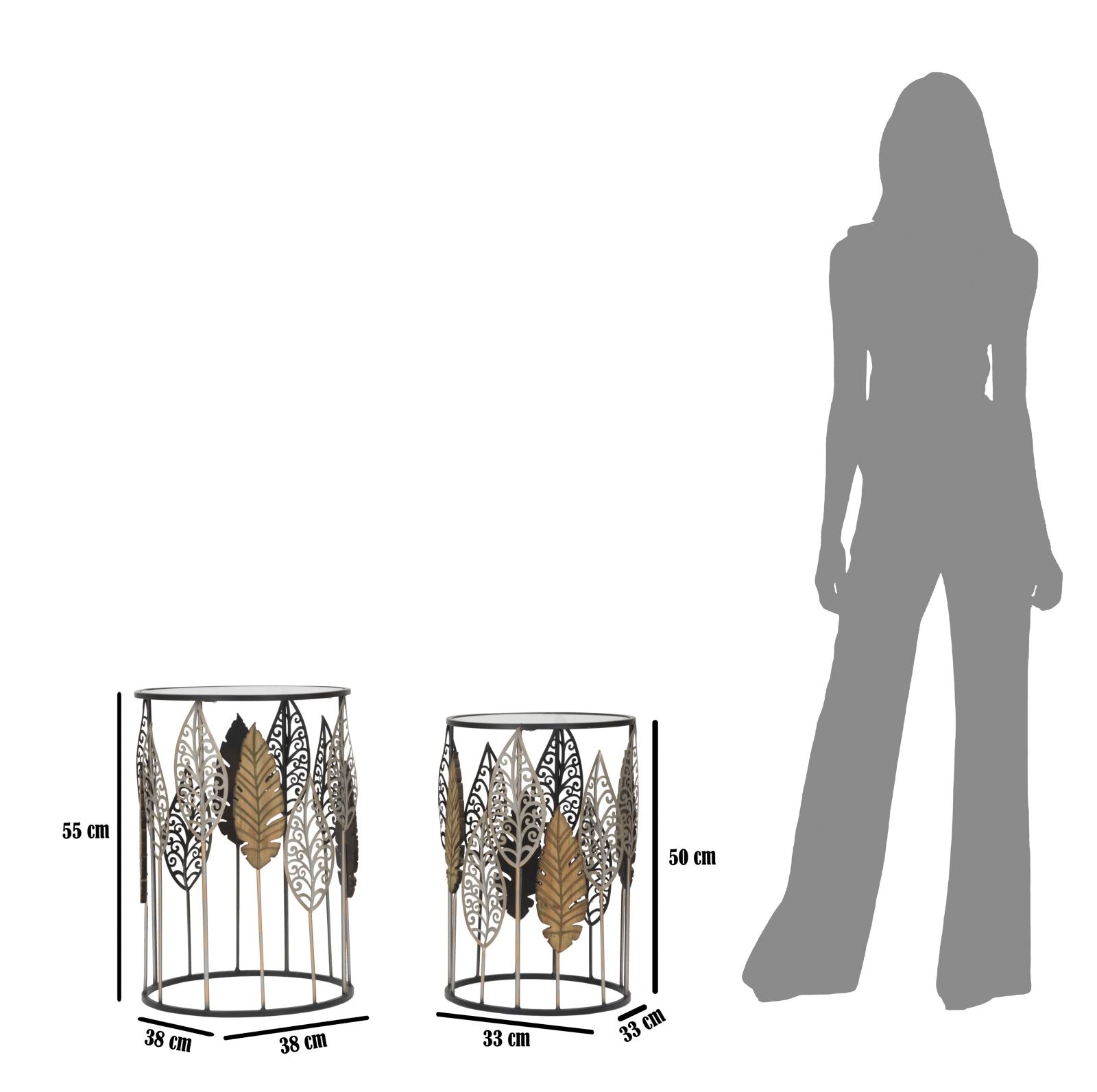 Luminous Leaf Bijzettafel Set Metaal Glas