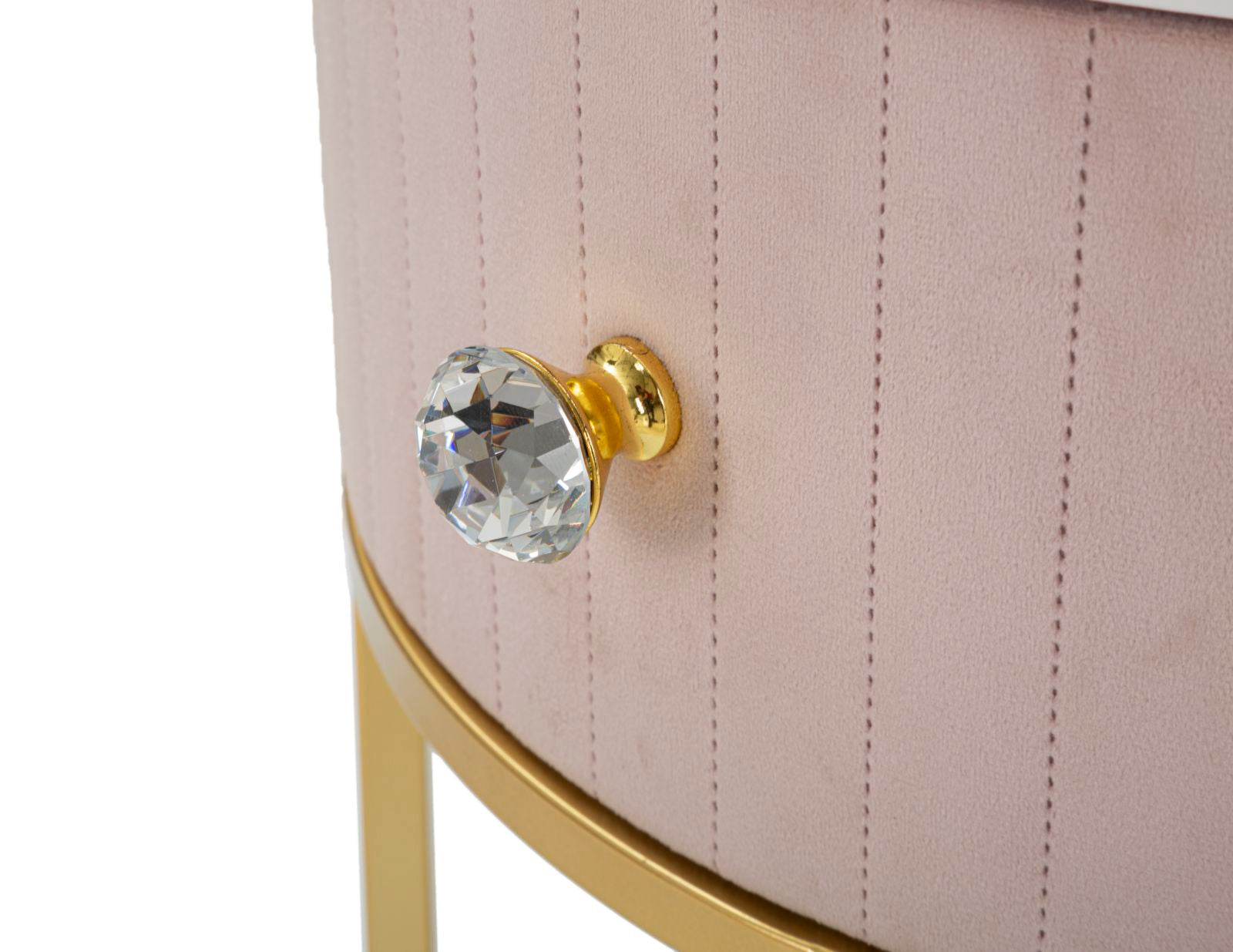 Voeg een vleugje elegantie toe aan je slaapkamer met het Nachtkastje Montpellier Roze. Dit ronde nachtkastje combineert een verfijnde gouden metalen structuur met een zacht roze bovenblad, dat bekleed is met luxe gewatteerde stof. Het imiteert de uitstraling van marmer, terwijl het ook functionele opbergruimte biedt met een handige lade en een onderste plank. Perfect voor het plaatsen van je favoriete boeken, een lamp of persoonlijke spullen, dit nachtkastje is zowel stijlvol als praktisch. Specificaties: Afmetingen: Ø 42 cm, Hoogte 48 cm Materiaal: Gouden metalen structuur, bovenblad en plank in imitatieschijf marmer Bekleding: Roze gewatteerde stof Functies: Inclusief lade voor extra opbergruimte Stijl: Modern en elegant Maak van je slaapkamer een stijlvolle en functionele ruimte met dit prachtige nachtkastje!