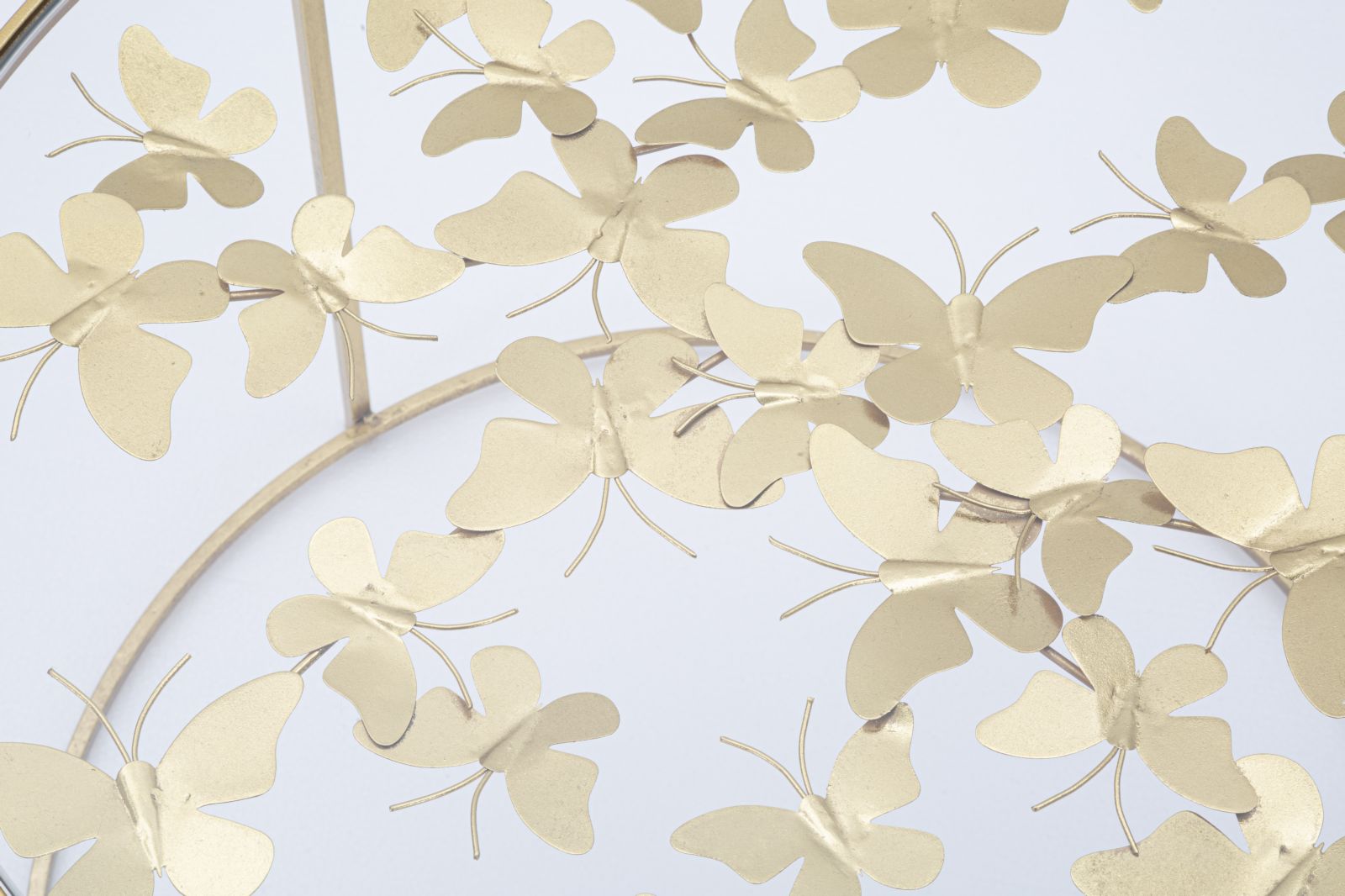 Breng een vleugje elegantie in je interieur met de Salontafel Butterflies. Deze ronde salontafel is gemaakt van hoogwaardig goud metaal en heeft een prachtig glazen bovenblad. Onder het blad schitteren verfijnde decoraties in de vorm van vlinders, die een charmante en unieke uitstraling aan de tafel geven. De strakke lijnen en het lichte ontwerp zorgen ervoor dat de tafel perfect in elke ruimte past zonder te zwaar over te komen. Specificaties: Materiaal: Gouden metaal met glazen bovenblad Afmetingen: Ø 60 cm, hoogte 40,5 cm Decoratie: Elegante vlinderontwerpen onder het glazen blad Stijl: Modern en verfijnd Kleur: Goud Maak van jouw woonkamer een stijlvol en uitnodigend geheel met deze prachtige salontafel!