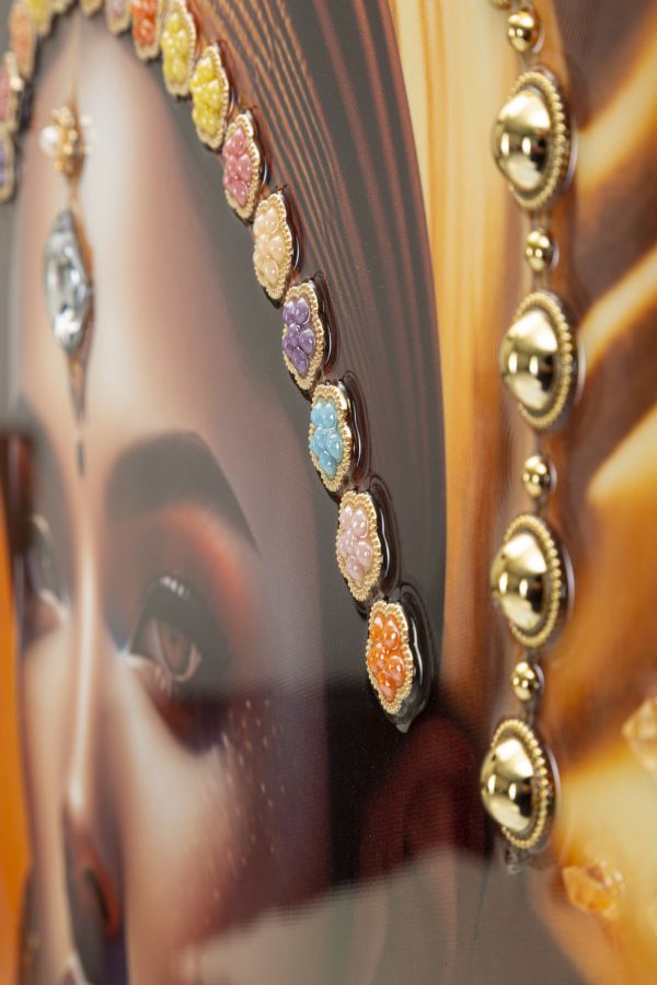 Transform je interieur met de prachtige ‘Samira’s Serenity’ van Luxe-Casa. Dit schilderij op canvas, ingekaderd in een elegante gouden metalen lijst, brengt een verfijnde en culturele flair in je ruimte. Het kunstwerk toont een vrouw in traditionele kleding en een turban, wat een authentiek en stijlvol accent toevoegt aan je decor. Specificaties: Materiaal: Canvas op houten frame Afmetingen: 72 cm x 4,5 cm x 102 cm Kleur: Gouden metalen lijst Design: Vrouw in traditionele kleding en turban Voeg een vleugje tijdloze schoonheid toe aan je huis met de ‘Samira’s Serenity’ en geniet van een kunstwerk dat zowel elegant als cultureel rijk is.