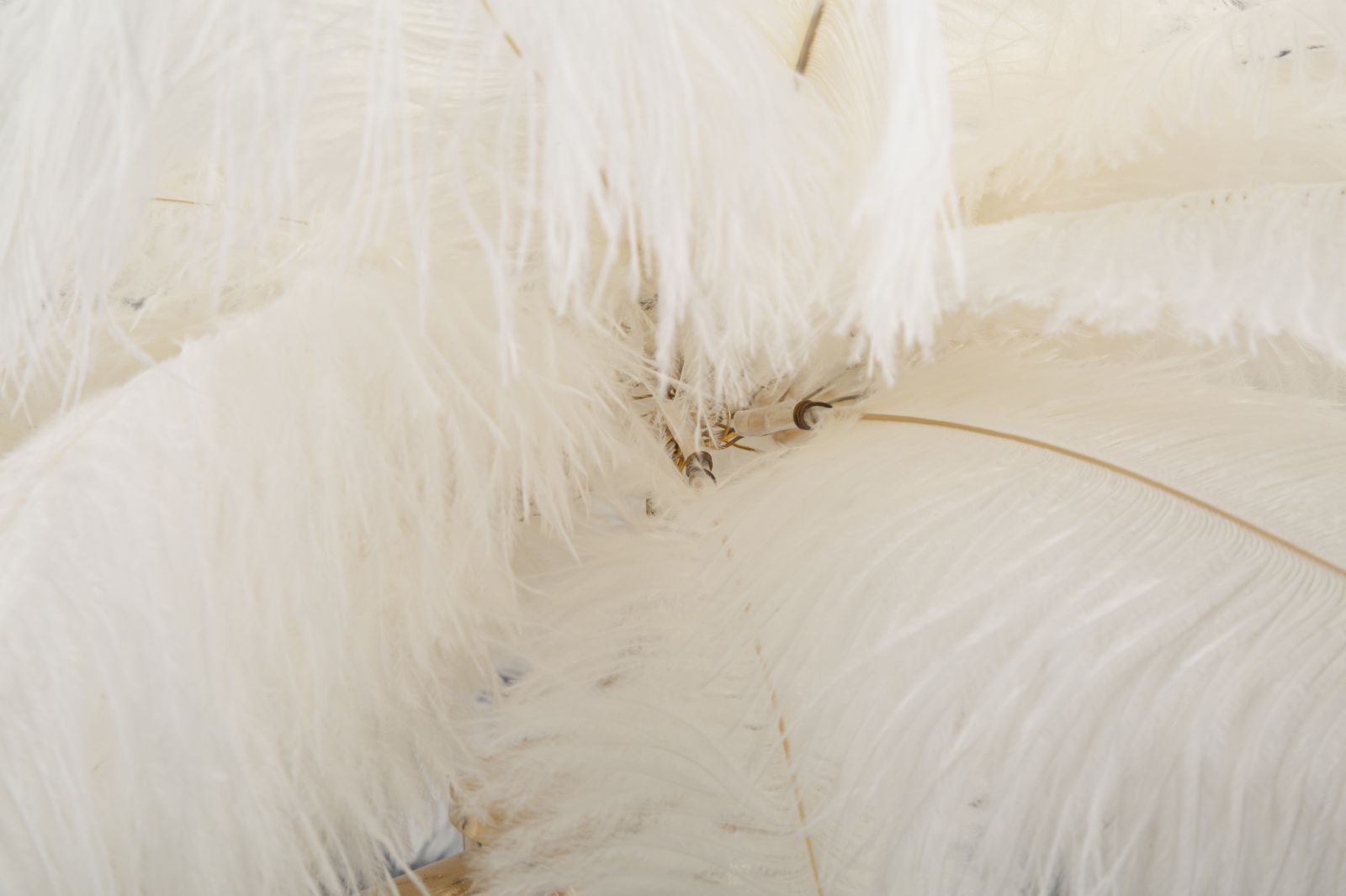 Verlicht je ruimte met de elegante Tafellamp Palm Wit. Deze prachtige lamp is niet alleen een bron van licht, maar ook een opvallend decoratief element. De lamp heeft een verfijnd ontwerp in gouden metaal en een unieke lampenkap gemaakt van zachte, witte veren, waardoor hij perfect past in elke moderne inrichting. Of je nu een sfeervolle ambiance wilt creëren in je woonkamer of een vleugje luxe aan je slaapkamer wilt toevoegen, deze tafellamp is de ideale keuze. Specificaties: Materiaal: Gouden metaal en witte veren Kleur: Wit (lampenkap), goud (basis) Afmetingen: Ø 40 x 55 cm Aantal lichtpunten: 2 Stijl: Modern en elegant Geef je interieur een luxueuze uitstraling met de Tafellamp Palm Wit!