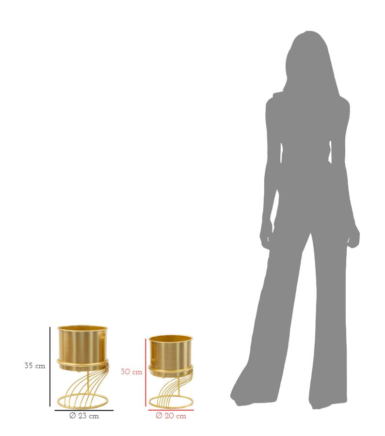 Deze set van twee vaashouders in goudmetaal is een perfecte manier om stijl en elegantie toe te voegen aan je interieur. De spiraalvormige lijnen van het ontwerp creëren een gevoel van beweging en harmonie, waardoor ze een subtiele maar verfijnde uitstraling hebben. Of je ze nu gebruikt voor bloemen of puur als decoratieve elementen, ze zullen zeker een statement maken in elke ruimte. Met hun tijdloze gouden afwerking passen deze vaashouders in zowel moderne als klassieke interieurs. Ze zijn niet alleen functioneel, maar ook een prachtige aanvulling op je decor, die een vleugje luxe uitstraalt. Specificaties: Set van 2 vaashouders Gemaakt van goudkleurig metaal Spiral lijnen die beweging en harmonie uitdragen Afmetingen: Ø 23×35 cm en Ø 20×30 cm Geschikt voor verschillende interieurstijlen Elegant en tijdloos design