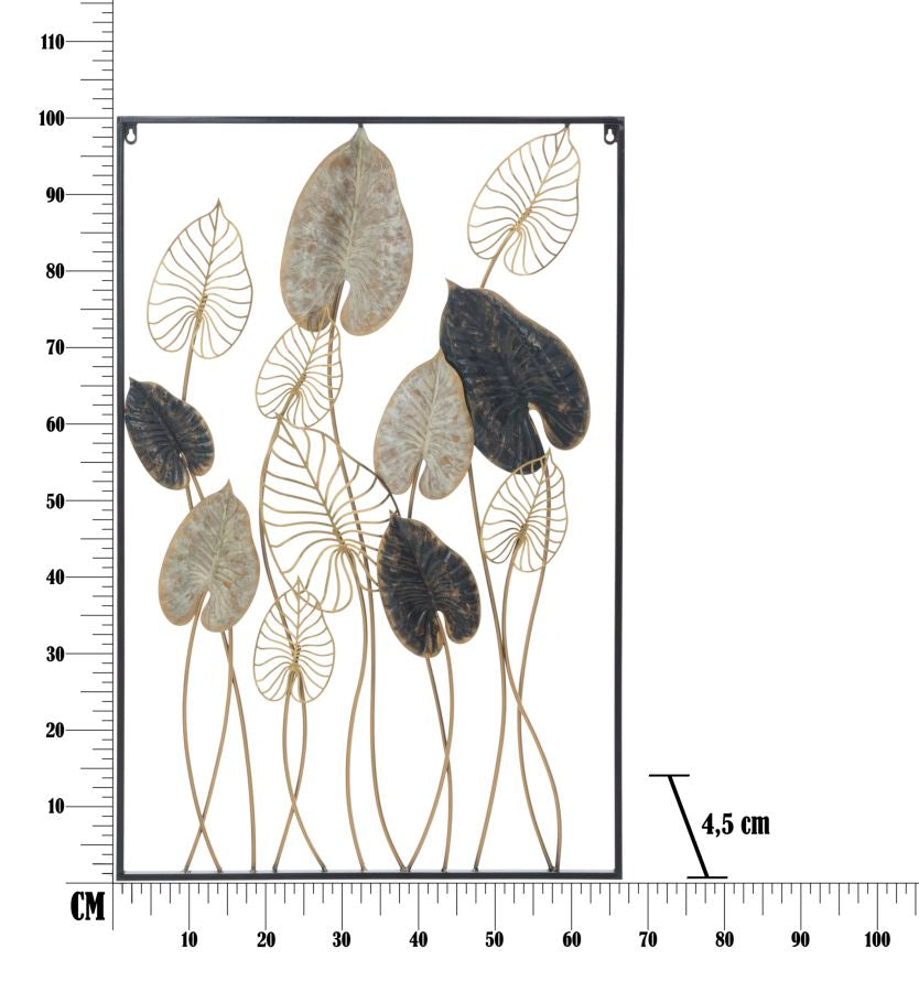Breng een vleugje moderne elegantie in je interieur met de Verdant Elegance wanddecoratie. Dit metalen wandpaneel met een bladmotief geeft je muur een verfijnde uitstraling. De bladeren in geometrische patronen voegen een glamoureuze en verrassende sfeer toe aan elke ruimte. Of je nu een strak interieur hebt of juist houdt van een eclectische mix, deze wanddecoratie past perfect in je decor. Specificaties: Materiaal: Metaal Kleur: Multicolor Afmetingen: 66×4,5×100 cm Ontwerp: Bladeren in een geometrisch patroon Stijl: Modern en glamoureus Verander je muur in een kunstwerk met deze stijlvolle en veelzijdige wanddecoratie!