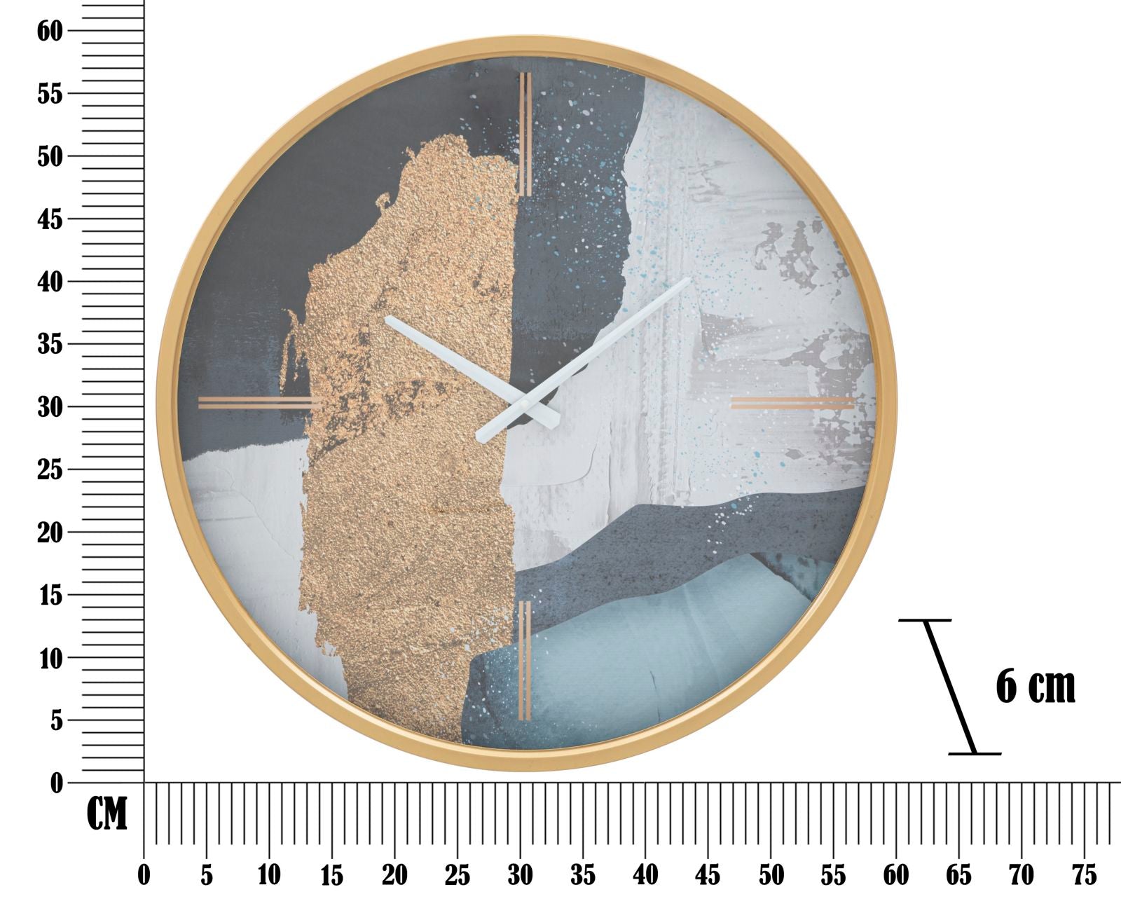 Breng een vleugje moderniteit in je interieur met wandklok Art Blue. Deze rondvormige klok is niet alleen een functioneel item, maar ook een statement piece dat elke ruimte transformeert in een kleine kunstexpositie. Het abstracte ontwerp in frisse blauwtinten voegt een eigentijdse flair toe aan je muur en maakt van tijd meten een waar genot. Specificaties: Diameter: 60 cm Dikte: 6 cm Materiaal: Hoogwaardige kunststoffen Kleur: Blauw met abstracte patronen Ontwerp: Modern en eigentijds Montage: Eenvoudig te bevestigen aan de muur Maak van je muren een blikvanger met deze unieke wandklok die zowel stijl als functionaliteit biedt!